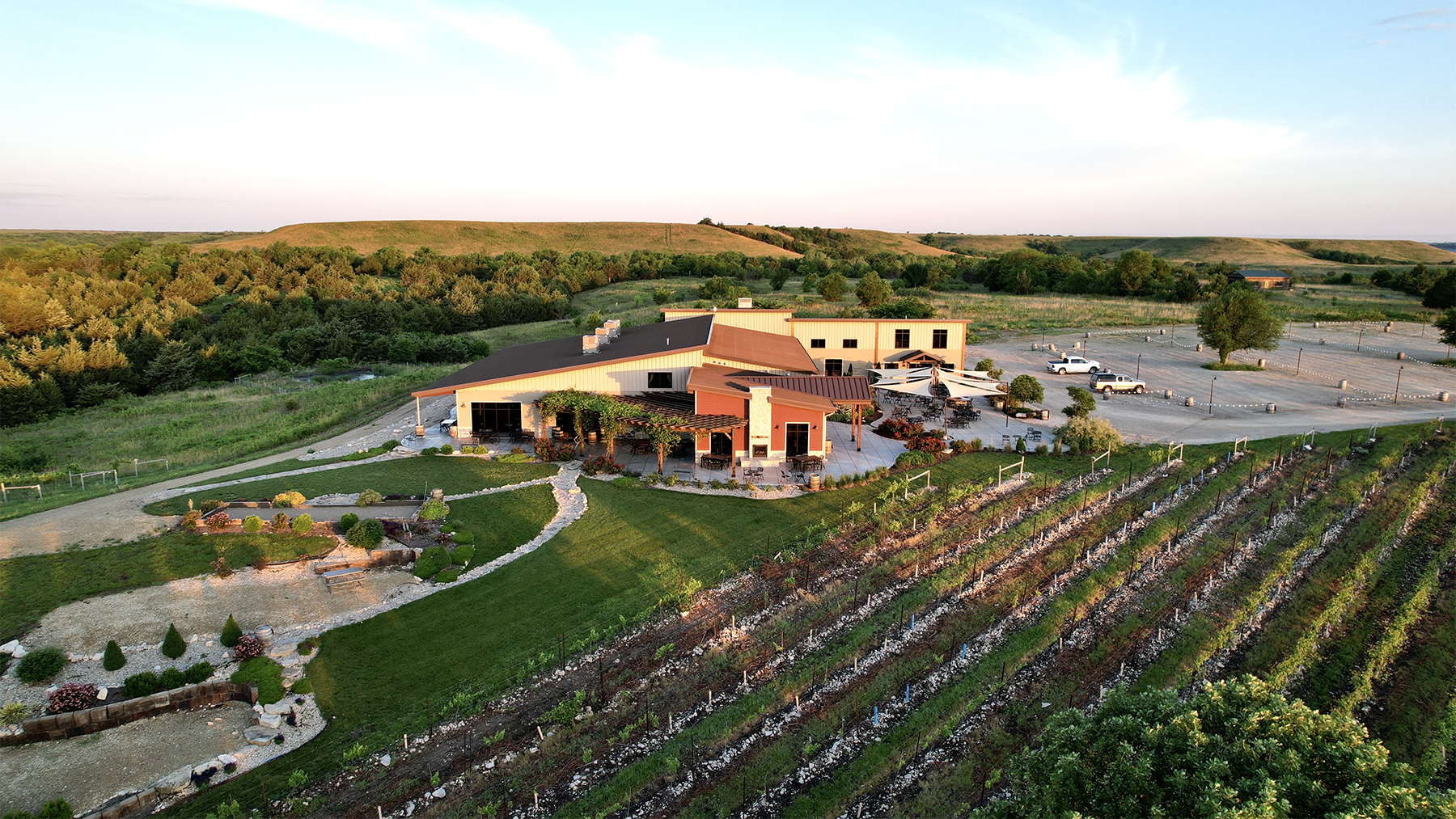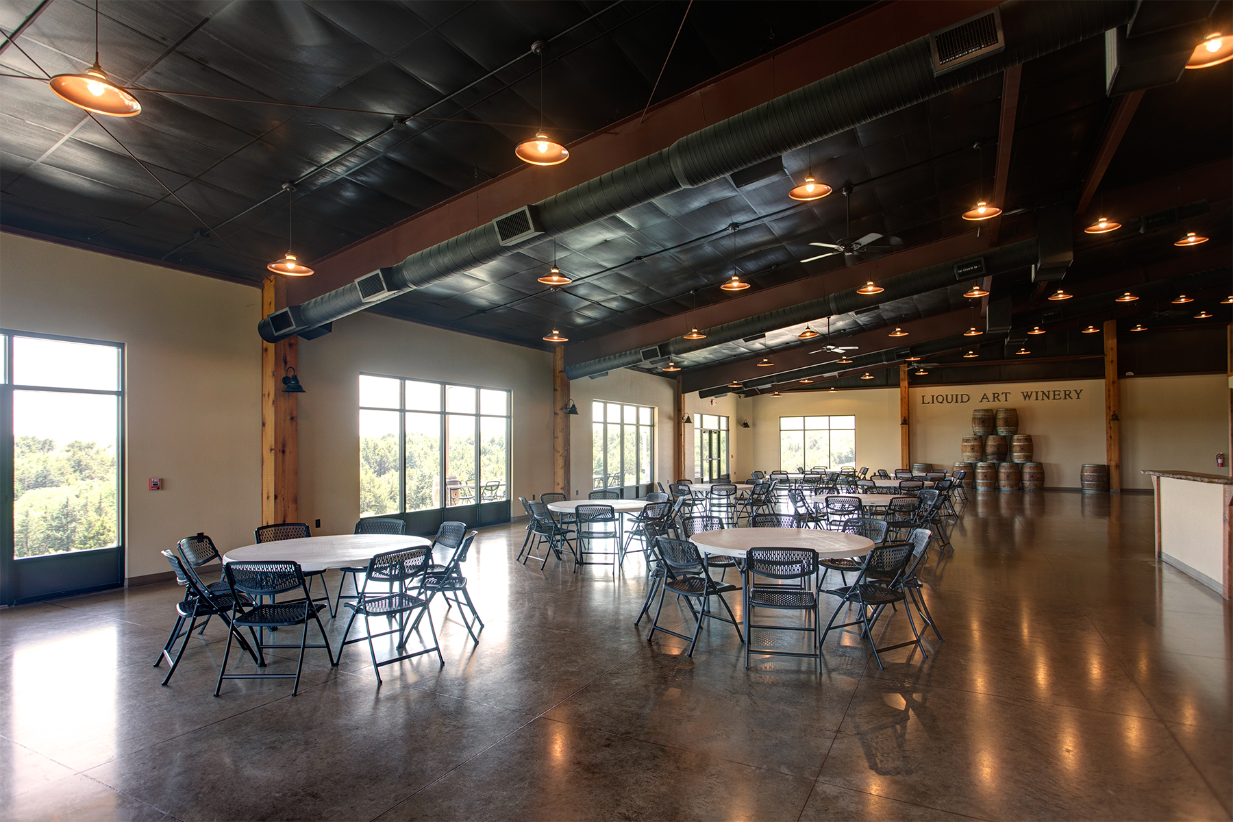 Liquid Art Winery brings rural landscape and urban amenities to life with its event center and winery located in the heart of the Flint Hills of Kansas. A destination in and of itself, the design works within the hilled landscape to accommodate groups of all sizes. It’s comfortable and warm indoor and outdoor designed space allows visitors spectacular views no matter where you are.