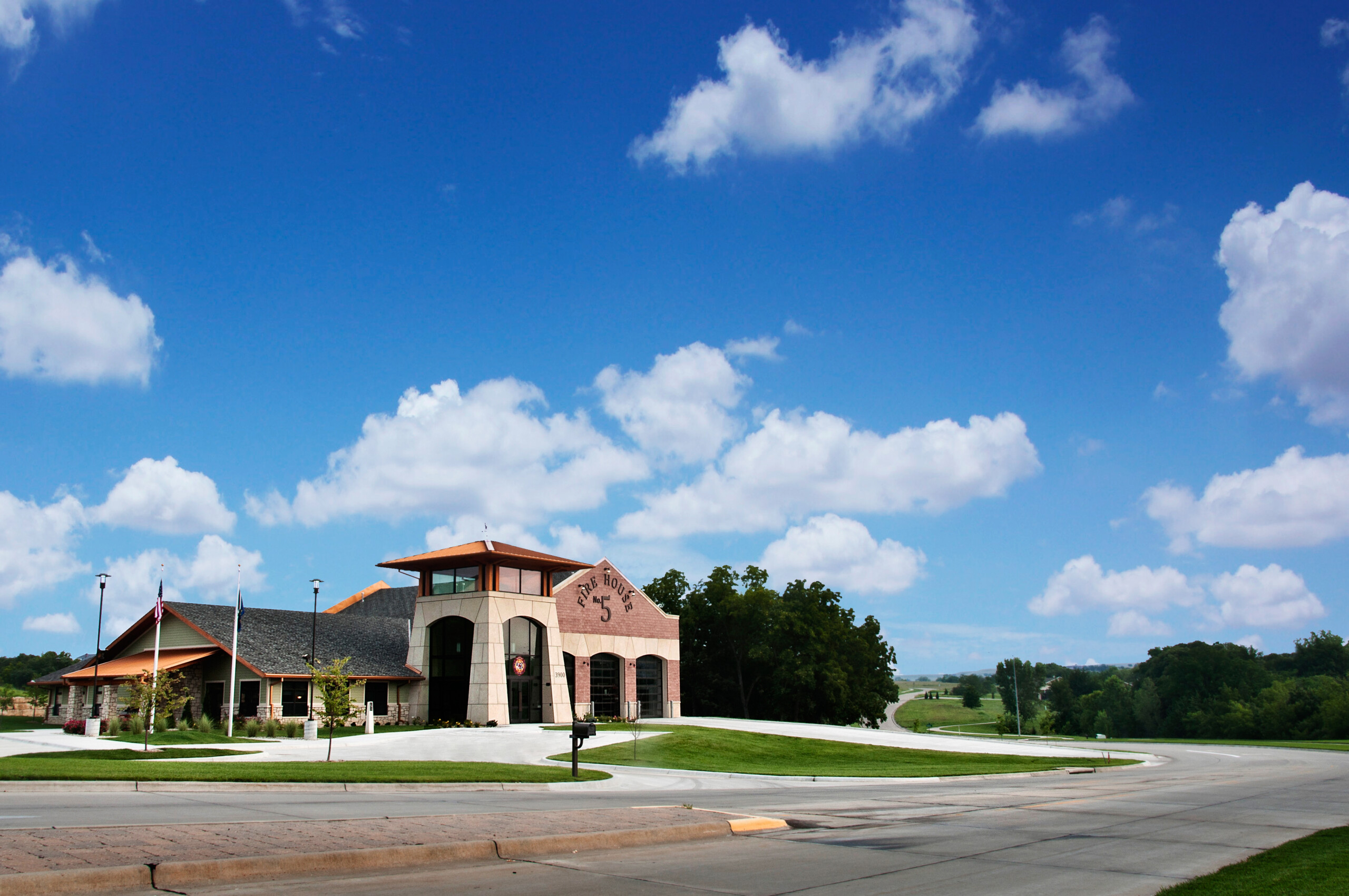 Manhattan’s Fire House #5 was a new fire station built to improve response times in an expanding area of the city. The goal of the fire house was to create something that is instantly recognizable as a fire station but also respect its context within the Grand Mere district in Manhattan, Kansas.